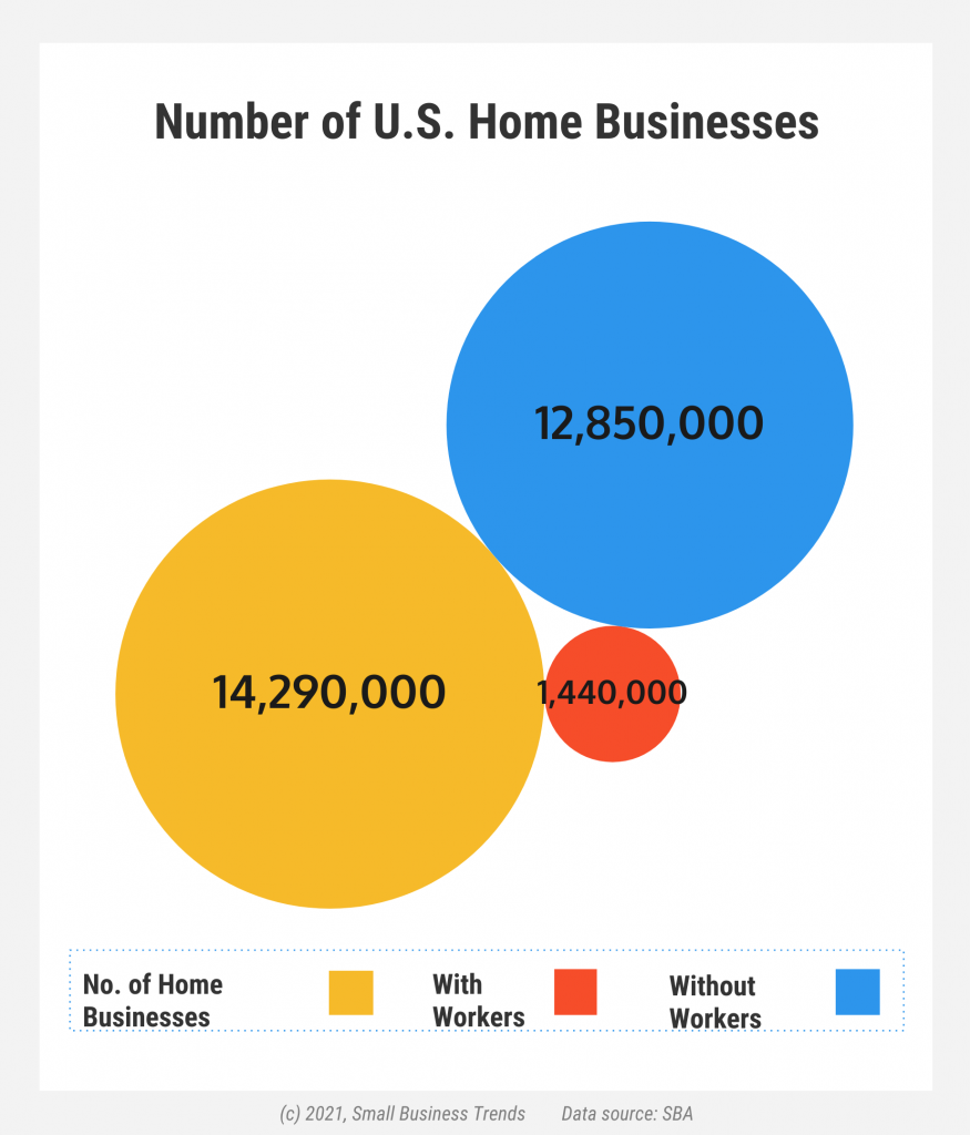 There are around 14.29 million home businesses in the US. Out of which, 1.44 million have paid workers, and the rest don’t have any staff members, according to the Small Business Administration.