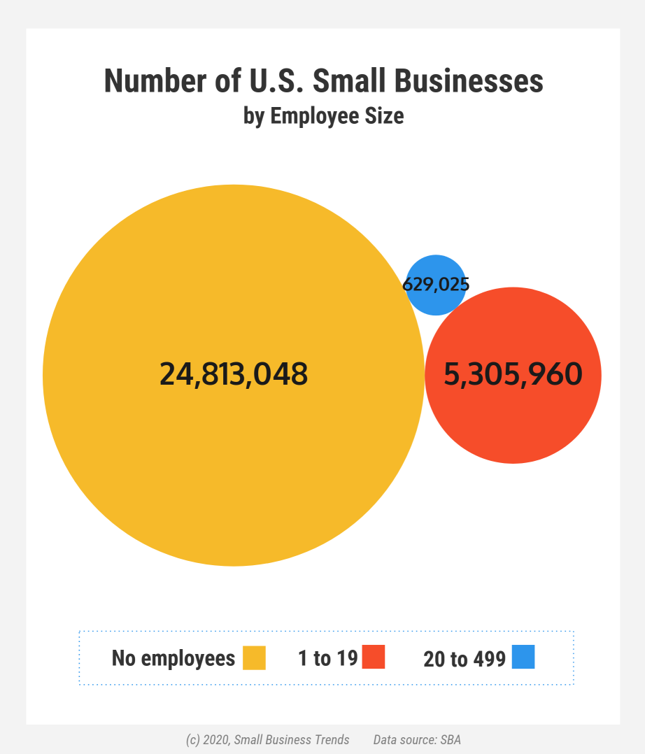 - 5,976,761 small businesses have 20 to 499 employees